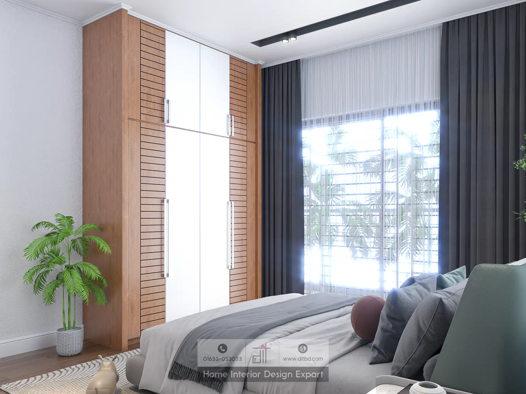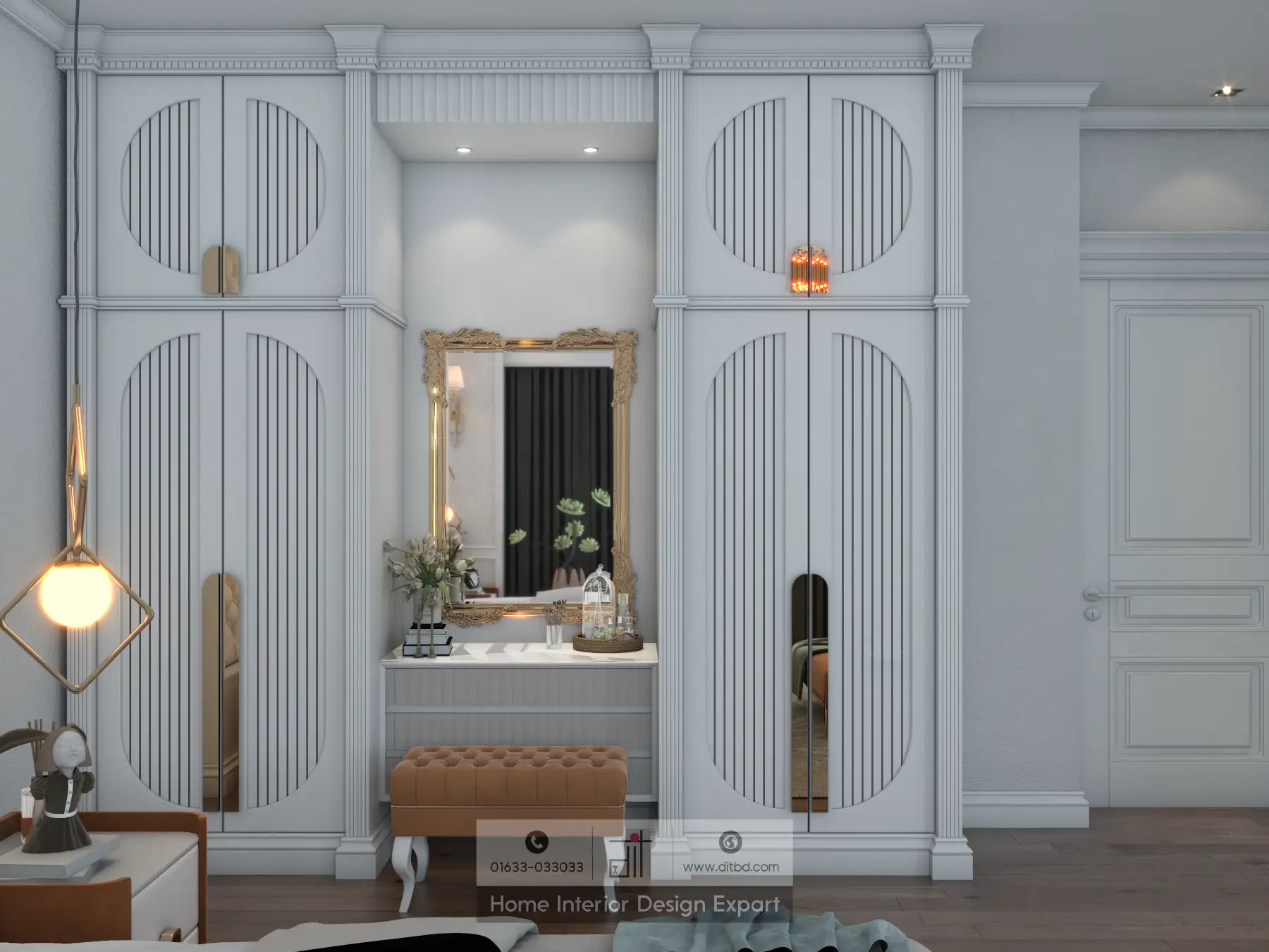 Each section of the closet is thoughtfully organized, with designated areas for hanging clothes, shelves for folded garments, and drawers for accessories. The built-in lighting within the closet ensures that every item is easily visible and accessible, making the daily routine more efficient and enjoyable.