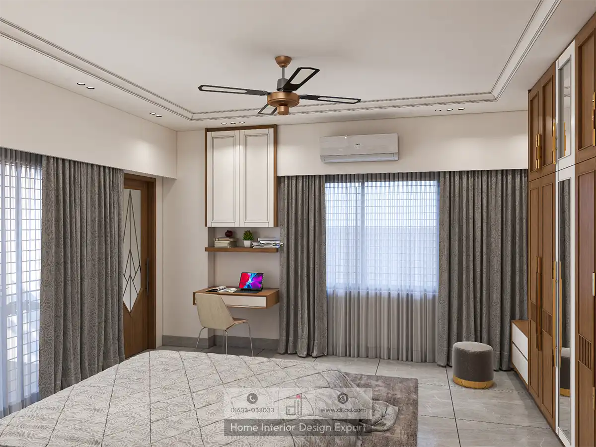 Everything about the master bedroom should be cozy and elegantly functional. Considering that, at DIT Studio, we transform master bedrooms into luxurious retreats that blend comfort and functionality. Our designs feature sleek, minimalist furniture with clean lines and a neutral color palette, creating a serene and sophisticated atmosphere. We incorporate elements like upholstered headboards, built-in wardrobes, and floating nightstands to maximize space and enhance the room’s aesthetic appeal.